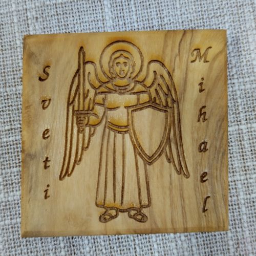 Drveni magnet manji – Sv. Mihael – maslina