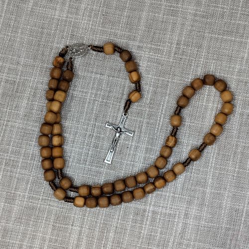 Dodajte dašak tradicije, prirode i elegancije svojoj kolekciji s Gospinom krunicom od valjkastih maslinovih boba. Neka vas prati kao trajni podsjetnik na duhovni mir i povezanost.