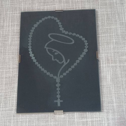Unesite mir i odraz vjere u svoj život krunicom s likom Gospe graviranim na staklu . Ovaj unikatni zidni ukras osmišljen je da kombinira umjetničku ljepotu s duhovnim značenjem, stvarajući atmosferu spokojstva u vašem prostoru. Svojom preciznošću u detaljima i vrhunskom izradom, ona je poseban dodatak svakom domu, uredu ili prostoru za molitvu.