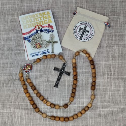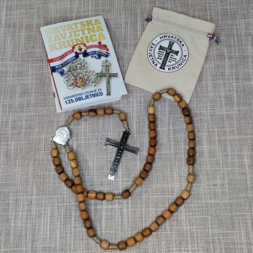 Hrvatska zavjetna krunica jest autentičan i poseban proizvod koji oživljava stoljetnu tradiciju hrvatskog naroda. Stojimo ponosni što nastavljamo ovu značajnu priču vjere i zajedništva, nastalu u suradnji s hrvatskom dijasporom iz Australije. Svaka krunica pažljivo je rukom izrađena, koristeći bobe autentičnog maslinovog drveta koje simbolizira mir i duhovnost. Ova jedinstvena izrada čini svaku krunicu posebnim artefaktom, savršenim poklonom za vaše voljene ili dragocjen dodatak osobnim molitvama.
