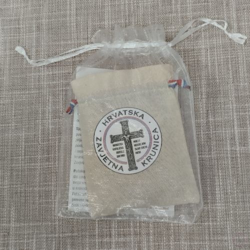 Uz ljepotu svojih detalja, Hrvatska zavjetna krunica dolazi uz dodatke koji obogaćuju cjelokupno iskustvo. Pakirana je u elegantnu platnenu vrećicu koja osigurava dugotrajnost i zaštitu, dok prigodna kartica donosi povijest i značaj same krunice. Kombinacija ovih značajki čini je jedinstvenim poklonom, prikladnim za sve prigode – od proslava sakramenata do posebnih obljetnica i duhovnih trenutaka s vašim najmilijima.