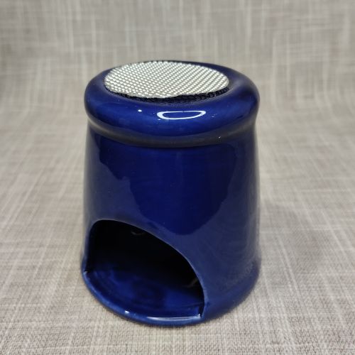 Keramička tamjanica sa metalnom mrežicom predstavlja savršeni spoj funkcionalnosti i estetike. Dizajnirana s pažnjom, ova tamjanica donosi eleganciju vašem prostoru. Keramička osnova pruža čvrstu i robusnu strukturu, dok metalna mrežica dodaje sofisticiranost i omogućava ravnomjerno spaljivanje tamjana, doprinoseći savršenom iskustvu uživanja u aromatičnim mirisima.