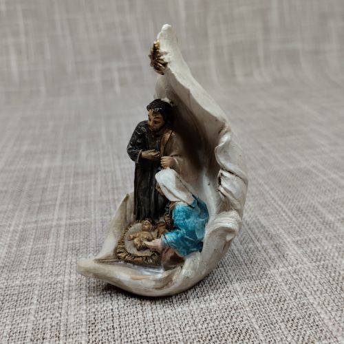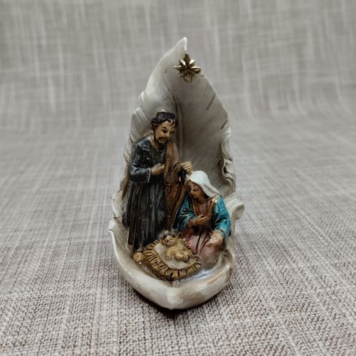 Izrađen od kvalitetnog gipsa, kipić Svete obitelji ističe se svojom čvrstoćom i trajnosti. Svaki detalj je pažljivo oblikovan, od izraza lica Svetog Josipa, Djevice Marije i malog Isusa, do elegantnog lista koji ih okružuje, što simbolično povezuje prirodu i duhovnost. Laka površinska obrada omogućuje lako održavanje, čuvajući njegov sjaj i ljepotu dugoročno.
