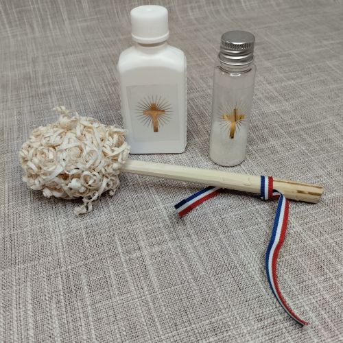 Set je izrađen od materijala visoke kvalitete koji osiguravaju dugotrajnost i pouzdanost. Bočice za svetu vodu i sol izrađene su sa posebnim fokusom na detalje, kako bi odgovarale svim vašim potrebama. Drvena škropilica za svetu vodu predstavlja spoj tradicije i elegancije, omogućujući vam lako i dostojanstveno korištenje tokom obreda ili blagoslova. Njen prirodni dizajn savršeno se uklapa u bilo koje okruženje.
