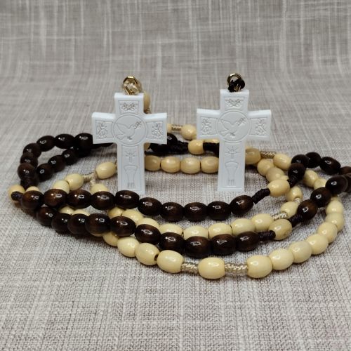 Krunica je izrađena od visokokvalitetnog drva, pažljivo obrađena kako bi pružila udobnost pri nošenju i dugotrajnost. Uz to, križ od umjetnog kamena ne samo da daje poseban izgled, već osigurava otpornost na habanje i oštećenja. Jednostavnost i skladan dizajn omogućavaju joj da odlično pristaje uz svaki stil, bilo da je nosite kao modni dodatak ili predmet duhovnog značaja.