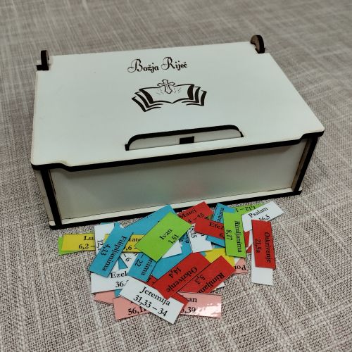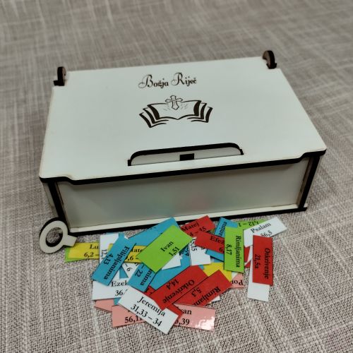 Ova drvena kutijica nije samo proizvod – ona je sredstvo za duhovni rast, povezivanje s bližnjima i svakodnevnu inspiraciju. Dodajte je svojoj kolekciji već danas i obogatite svoj život nadahnjujućim porukama koje će vas pratiti u svakom koraku.