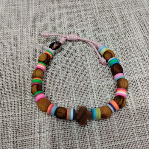 Nizana narukvica izrađena je od visokokvalitetnih maslinovih boba, koji su poznati po svojoj izdržljivosti i prirodnoj ljepoti. Drveni ukrasni umetci dodaju toplinu i mladenački izgled, dok medaljica Srca Isusovog pruža duhovnu dimenziju. Narukvica je nanizana na izdržljivom užetu, osiguravajući dugotrajnost i udobnost pri nošenju. Svaki detalj pažljivo je osmišljen kako bi se osigurala sigurnost i udobnost vašeg djeteta.