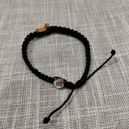 Ova prekrasna narukvica nije samo modni dodatak, već i simbol vjere i duhovnosti. Izrađena je od kvalitetnog pletenog užeta i ukrašena tau križem od maslinovog drveta te medaljicom s likom Gospe na jednoj strani i Srcem Isusovim na drugoj. Nosite je kao podsjetnik na svoju vjeru i kao izvor snage i utjehe u svakodnevnom životu.