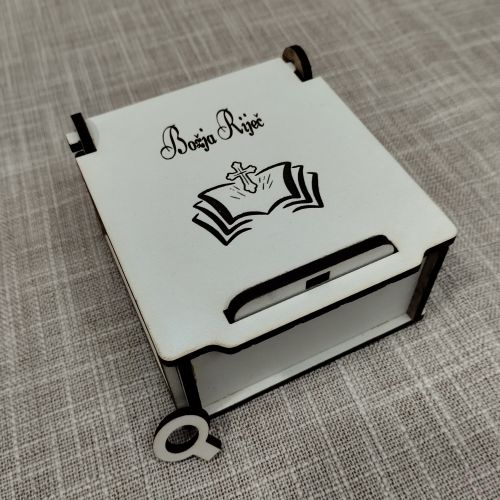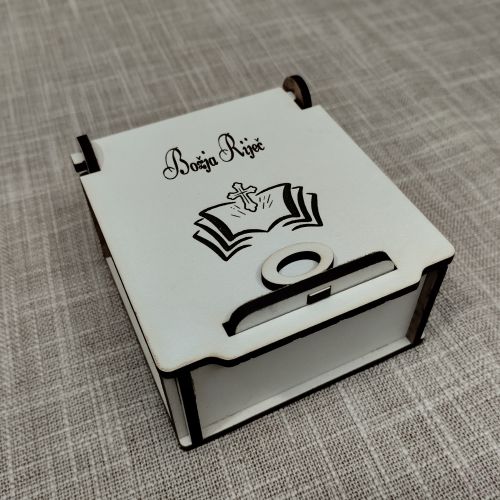 Naš proizvod, drvena kutijica za krunicu, savršeno objedinjuje estetiku i praktičnost. Izrađena od kvalitetnog MDF materijala, ova kutijica je dizajnirana da čuva vaše krunice na siguran i elegantan način. Prigodna laserska gravura dodatno doprinosi njenom jedinstvenom izgledu, čineći je savršenim izborom za poklon ili ličnu upotrebu.
