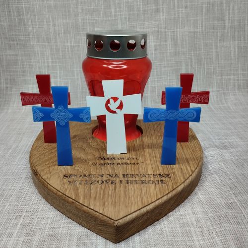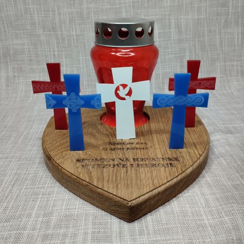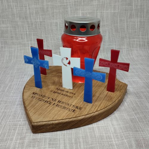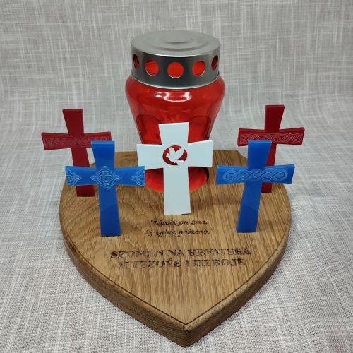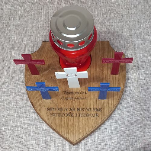 Predstavljamo vam jedinstveni drveni stalak za lampion u obliku štita, izrađen od visokokvalitetnog hrastovog drveta i zaštićen prirodnim uljem radi dugotrajnog očuvanja. Ovo izvanredno umjetničko djelo kombinira tradicionalni dizajn i duboku simboliku, čime odaje počast palim herojima te istovremeno unosi dozu elegancije u svaki prostor.