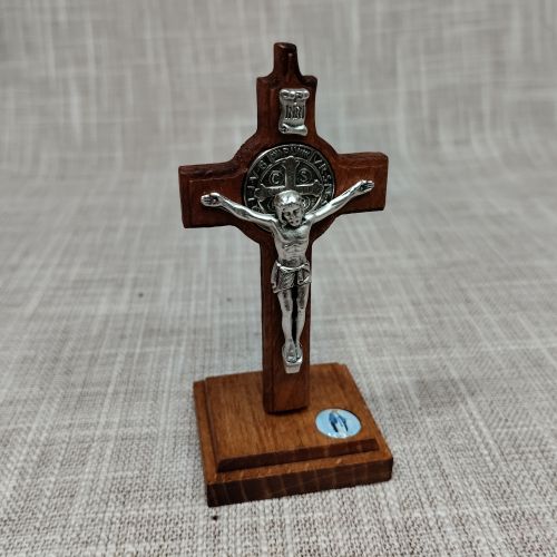 Raspelo dolazi s ugrađenom medaljicom Sv. Benedikta, simbolom zaštite i molitve, dok dodatna medaljica u postolju pruža dublje značenje i estetsku vrijednost. Svaki element je pažljivo odabran kako bi se naglasila poruka Svetog Benedikta, čuvenog po snazi molitve i ohrabrivanju vjernika kroz stoljeća. Postolje pruža stabilnost i dodaje sveukupnoj eleganciji dizajna.