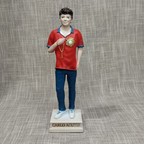 Sveti Carlo Acutis, poznat kao “Božji influencer”, ostavio je nezaboravno duhovno nasljeđe unatoč svojoj mladosti. Ovaj kip, izrađen u boji s impresivnom pažnjom na detalje, slavi njegovu vjeru, ljubav prema euharistiji i čvrstu povezanost s Bogom. Dizajniran je kako bi inspirirao i podsjetio na važnost duhovne predanosti u svakodnevnom životu.